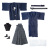 内容 羽織、長着、袴、足袋、肌着、袴用無地帯、長着用小紋柄帯、補正用キルト芯、着せ付け説明書。