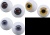 オレンジとブルーをベースに、ブラックのラインを螺旋状に施し、瞳孔には赤の粒子を散りばめました。