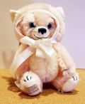 優しいピンクのボディにブルーのアイが映えて、おひげ、鼻のステッチやしっぽなど、