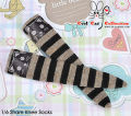 coolcat ブライス・プーリップサイズ ネコプリント付ボーダーニーソックスKS-P06ブラック×ブラウン