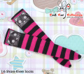 coolcat ブライス・プーリップサイズ ネコプリント付ボーダーニーソックスKS-P05ブラック×ディープピンク