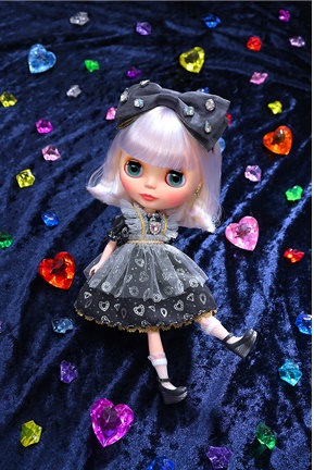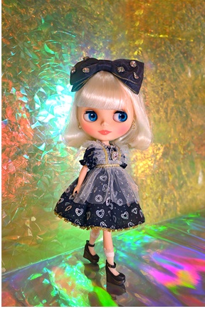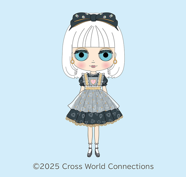 胸元のハートのビジューがかわいいチュールエプロンは、ゴールドのドットが付いた生地を使用しています。