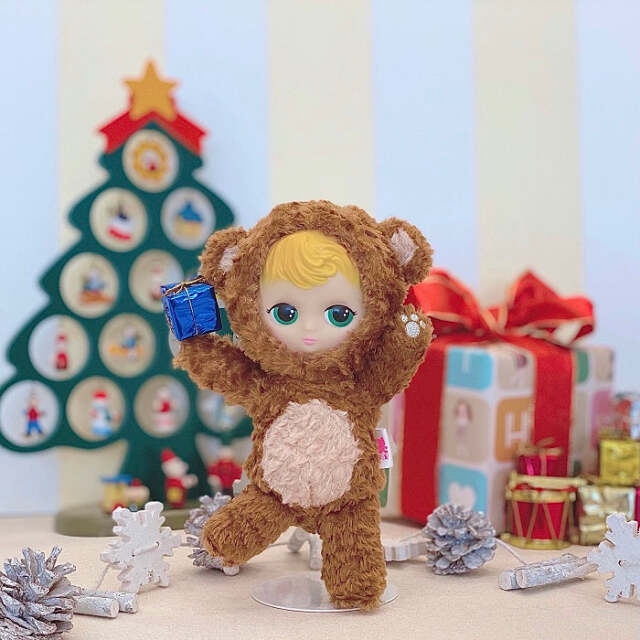 ヴィンテージ感のあるメイクと短めの手足のユーモアを感じるぬいぐるみブライスです。