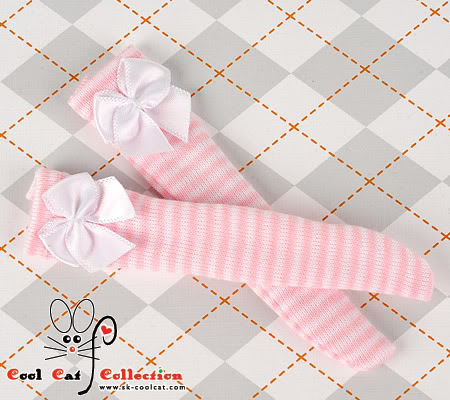 coolcatリボン付ニーハイソックスKS-L59ピンク×白1174