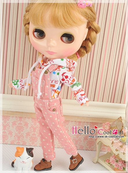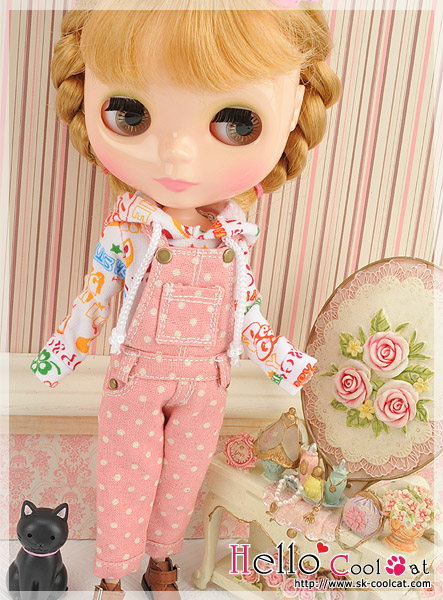 CC デニムオーバーオールピンクドットOL-04