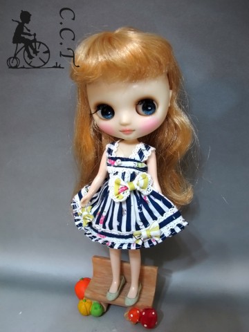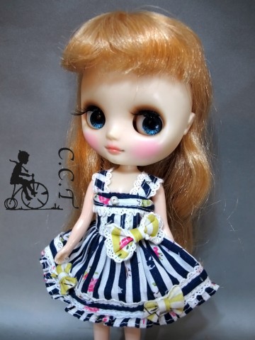 CCTミディサイズブルー&ホワイトフローラルストライプワンピースcmb053