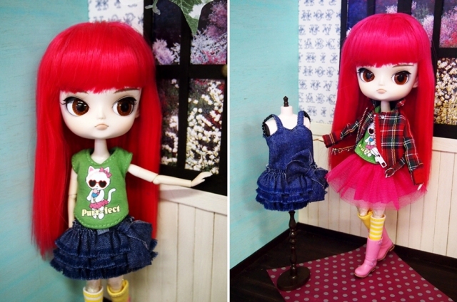 ネオブライス「ウェンディウィークエンダー」のアウトフィットや赤いウィッグに合わせたライダースジャケットやデニムワンピなどでいろいろなコーディネートをお楽しみください。