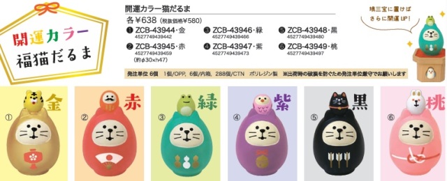 開運カラー猫だるま 桃 価格: 638円(税抜 580円) | 無し |