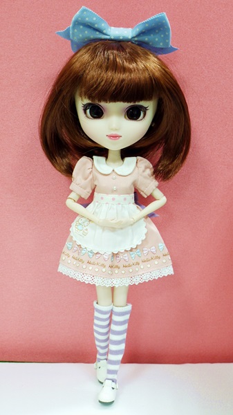 ハローキティのドールサイズミニチュア小物と、デフォルトのウィッグも付いています。