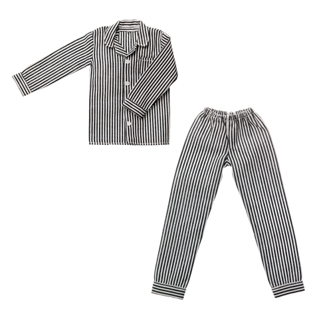 メンズサイズのベーシックなパジャマ上下セットです。ブラックストライプ。